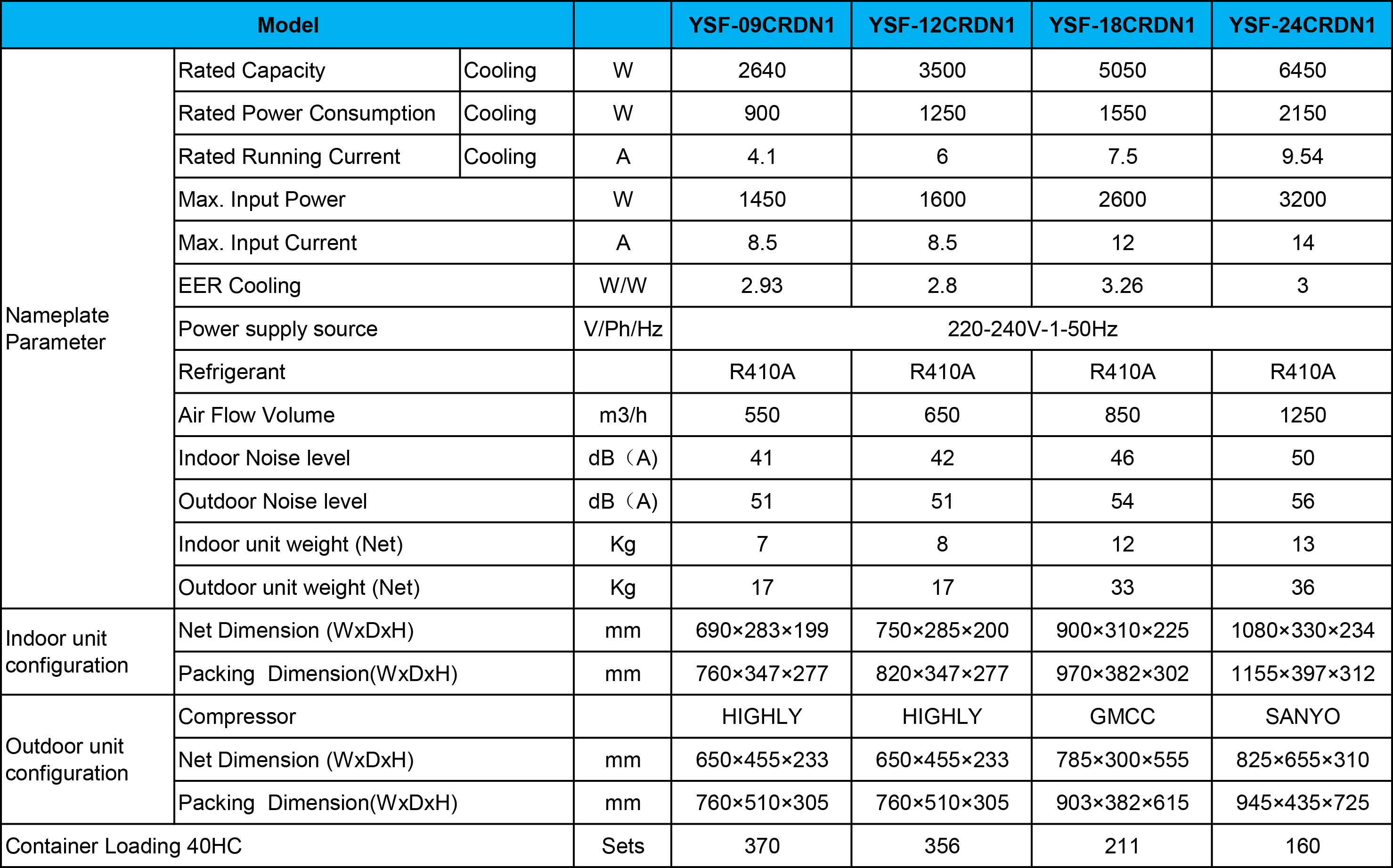 50Hz R410a Only Cooling 9000 ~ 24000 Btu DC Inverter Divided Air Conditioner For Southeast Asian Market